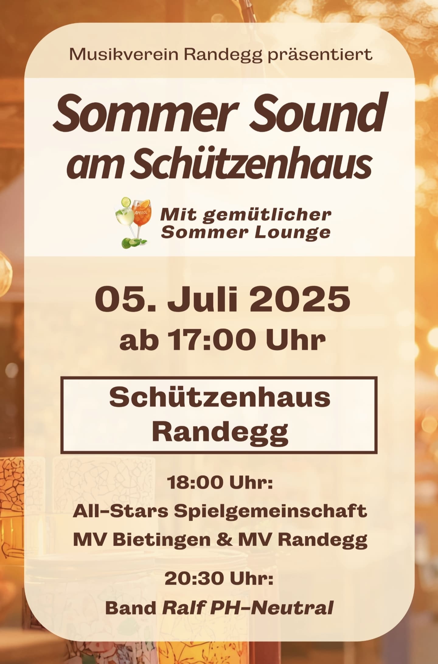 Am 5. Juli findet unser Sommerfest statt, dieses Jahr erstmalig am Schützenhaus in Randegg.